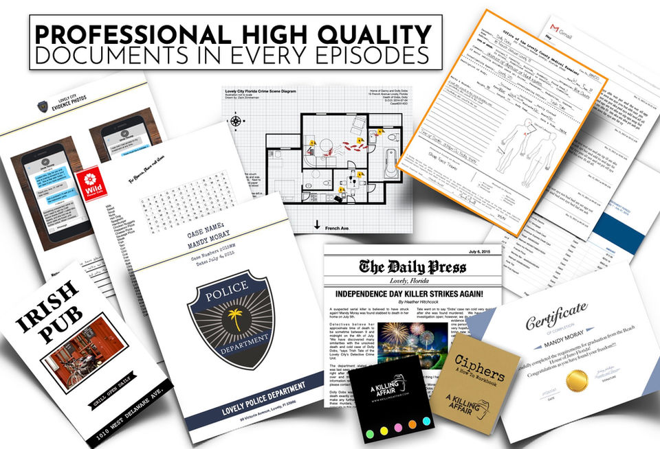 Like watching your favorite TV show, we recommend starting with Season 1, Episode 1. In each episode, you will work through secret messages, hidden clues, and evidence, all while eliminating suspects. Once you have your final episode of the season, you will have everything you need to convict the killer.